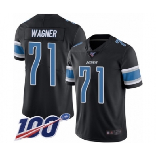 >Men's Detroit Lions #71 Ricky Wagner Limited Black Rush Vapor Untouchable 100th Season Football Jersey