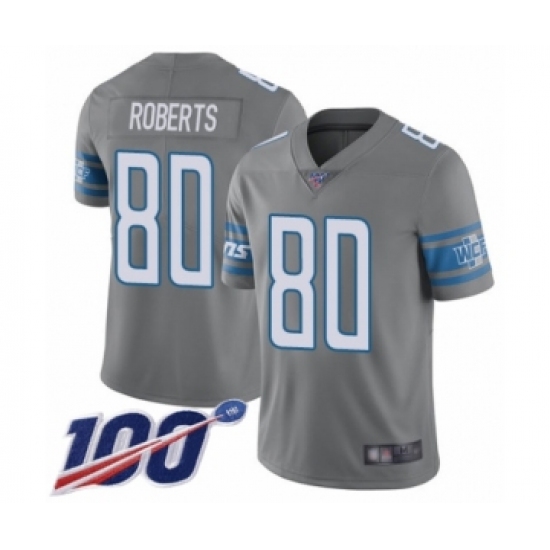 Men's Detroit Lions #80 Michael Roberts Limited Steel Rush Vapor Untouchable 100th Season Football Jersey