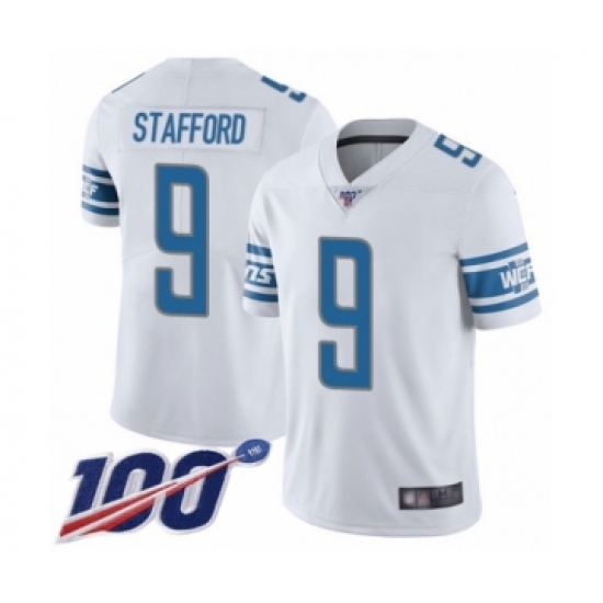 Men's Detroit Lions #9 Matthew Stafford White Vapor Untouchable Limited Player 100th Season Football Jersey