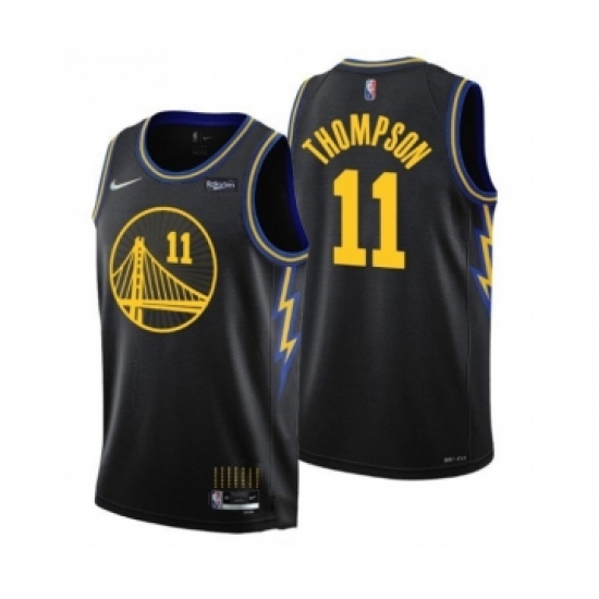 Men's Golden State Warriors #11 Klay Thompson Black 2022 NBA Finals Champions Stitched Jersey