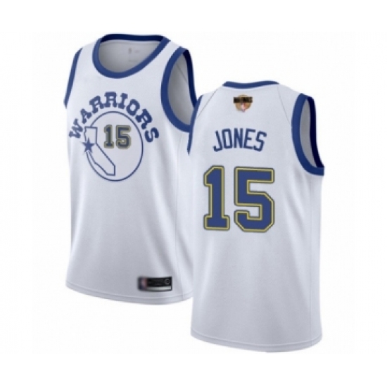 >Men's Golden State Warriors #15 Damian Jones Swingman White Hardwood Classics 2019 Basketball Finals Bound Basketball Jersey
