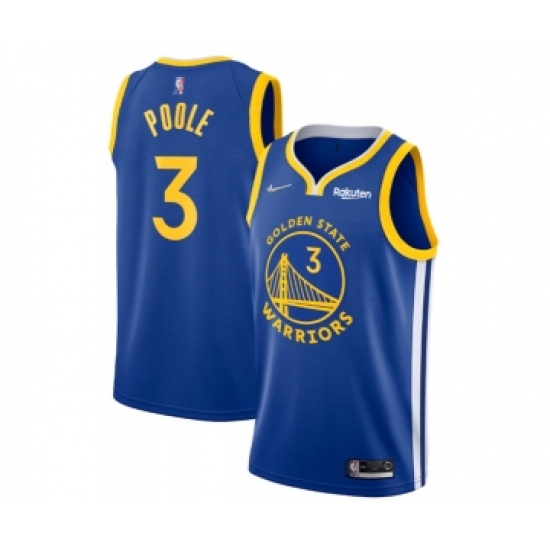 >Men's Golden State Warriors #3 Jordan Poole 2022 Royal 75th Anniversary Stitched Jersey