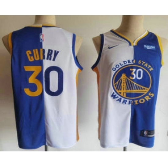 Men's Golden State Warriors #30 Stephen Curry White Blue Two Tone Stitched Swingman Nike Jersey With Sponsor