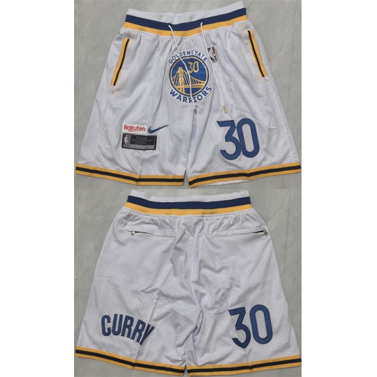Men's Golden State Warriors #30 Stephen Curry White Shorts(Run Small)