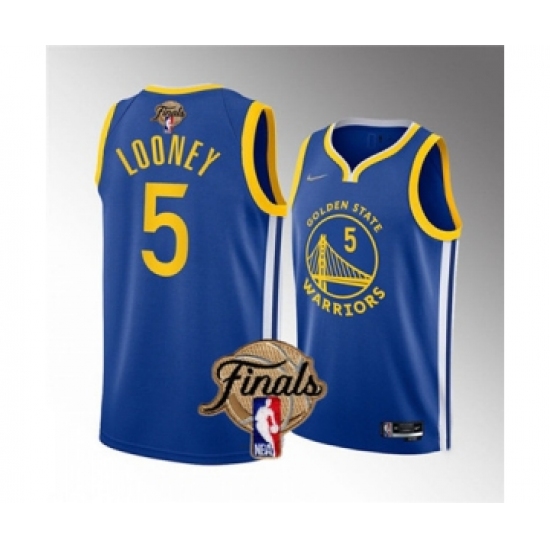 >Men's Golden State Warriors #5 Kevon Looney 2022 Blue NBA Finals Stitched Jersey