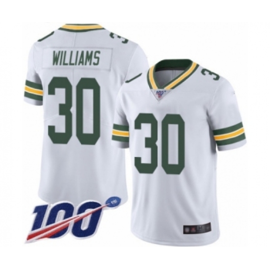 Men's Green Bay Packers #30 Jamaal Williams White Vapor Untouchable Limited Player 100th Season Football Jersey