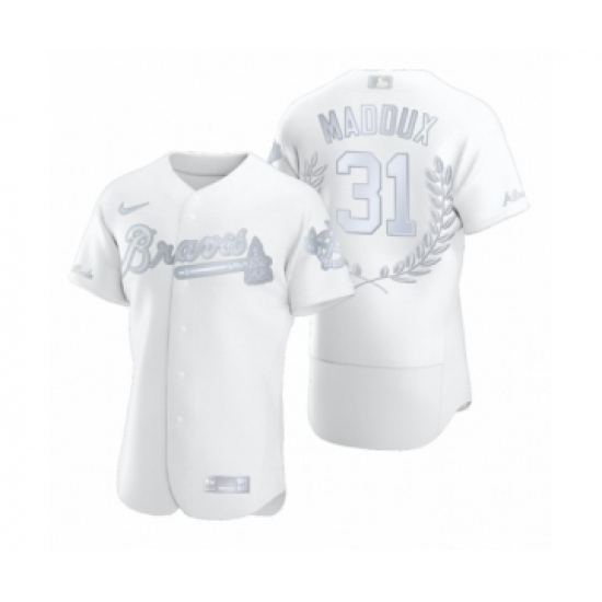 Men's Greg Maddux #31 Atlanta Braves White Awards Collection NL Cy Young Jersey