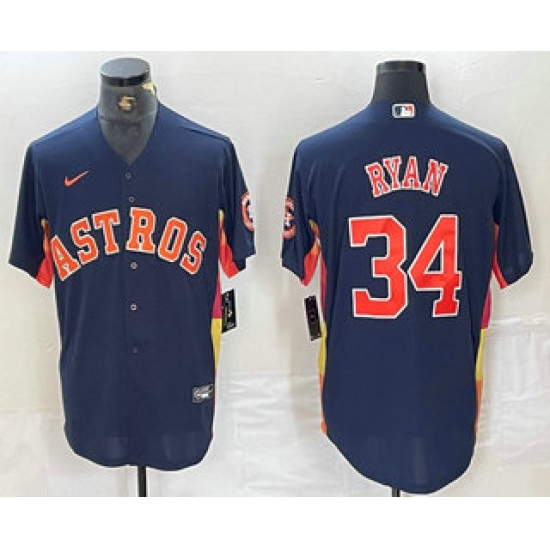 Men's Nike Houston Astros #34 Nolan Ryan Navy Alternate Stitched Baseball Jersey