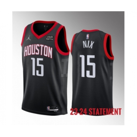 Men's Houston Rockets #15 Daishen Nix Black 2023 Statement Edition Stitched Basketball Jersey