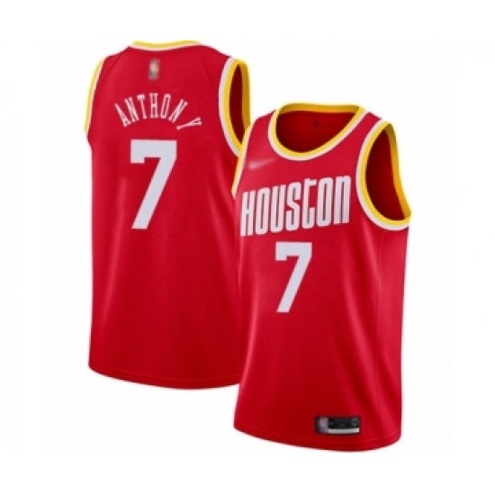 >Men's Houston Rockets #7 Carmelo Anthony Authentic Red Hardwood Classics Finished Basketball Jersey