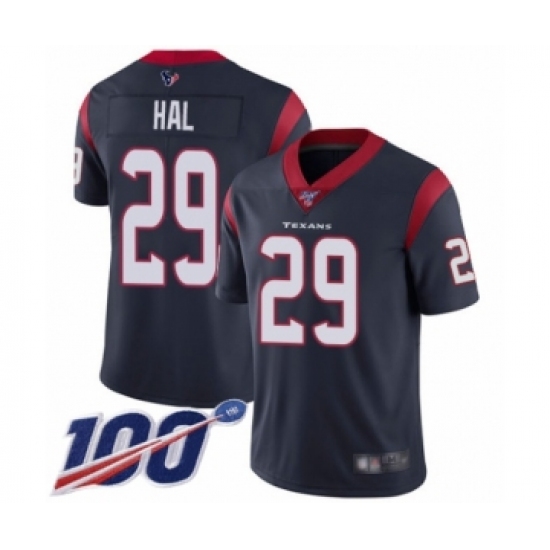 >Men's Houston Texans #29 Andre Hal Navy Blue Team Color Vapor Untouchable Limited Player 100th Season Football Jersey