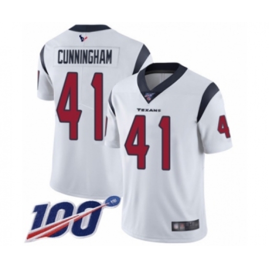 >Men's Houston Texans #41 Zach Cunningham White Vapor Untouchable Limited Player 100th Season Football Jersey