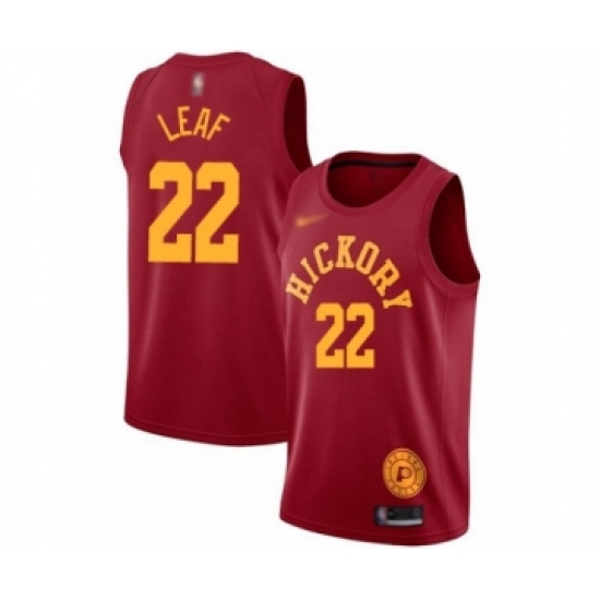 >Men's Indiana Pacers #22 T. J. Leaf Authentic Red Hardwood Classics Basketball Jersey