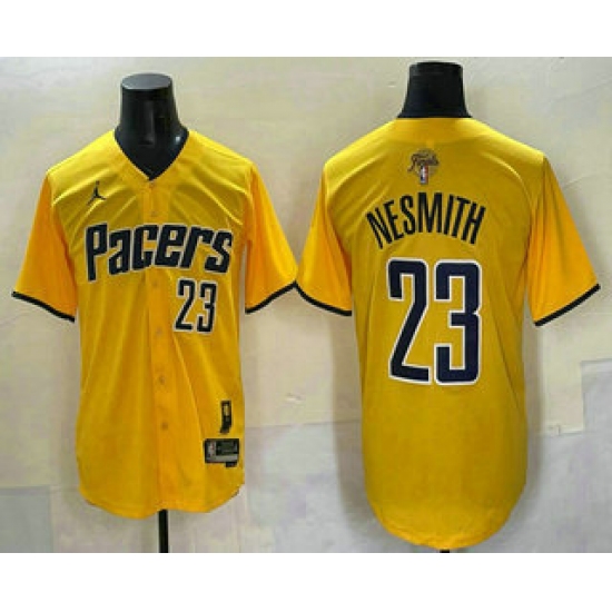 >Men's Indiana Pacers #23 Aaron Nesmith Yellow 2025 Finals Vapor Stitched Baseball Jersey