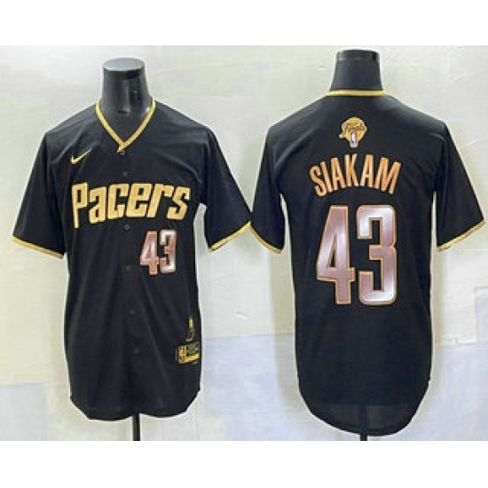 >Men's Indiana Pacers #43 Pascal Siakam Black Gold 2025 Finals Vapor Stitched Baseball Jersey