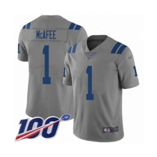 Men's Indianapolis Colts #1 Pat McAfee Limited Gray Inverted Legend 100th Season Football Jersey