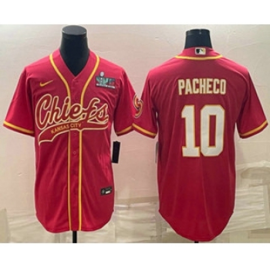 Men's Kansas City Chiefs #10 Isiah Pacheco Red With Super Bowl LVII Patch Cool Base Stitched Baseball Jersey
