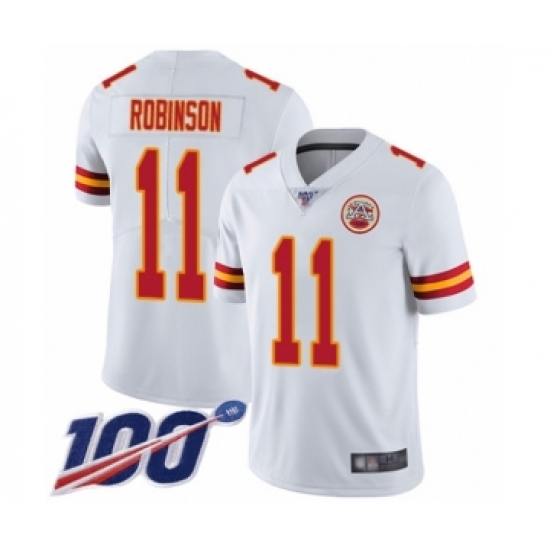 >Men's Kansas City Chiefs #11 Demarcus Robinson White Vapor Untouchable Limited Player 100th Season Football Jersey