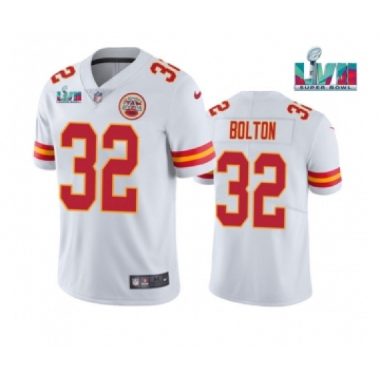 Men's Kansas City Chiefs #32 Nick Bolton White Super Bowl LVII Patch Vapor Untouchable Limited Stitched Jersey