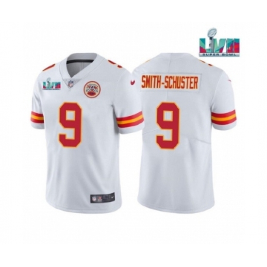>Men's Kansas City Chiefs #9 JuJu Smith-Schuster White Super Bowl LVII Patch Vapor Untouchable Limited Stitched Jersey