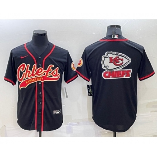 Men's Kansas City Chiefs Black Team Big Logo With Patch Cool Base Stitched Baseball Jersey