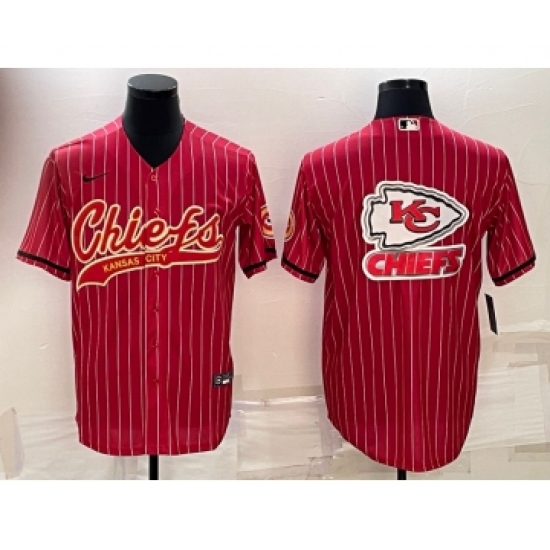 Men's Kansas City Chiefs Red Team Big Logo With Patch Cool Base Stitched Baseball Jersey