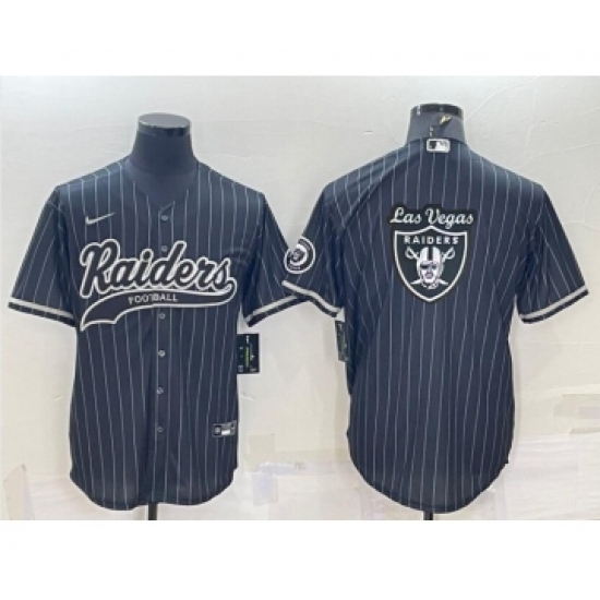 >Men's Las Vegas Raiders Black Pinstripe Team Big Logo With Patch Cool Base Stitched Baseball Jersey