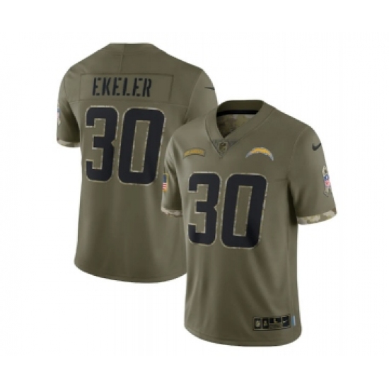 >Men's Los Angeles Chargers #30 Austin Ekeler 2022 Olive Salute To Service Limited Stitched Jersey