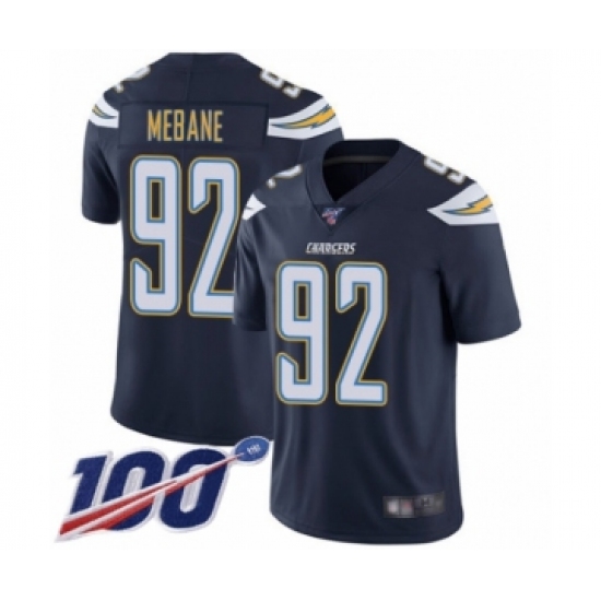 Men's Los Angeles Chargers #92 Brandon Mebane Navy Blue Team Color Vapor Untouchable Limited Player 100th Season Football Jersey