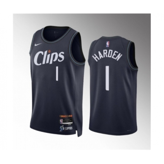 Men's Los Angeles Clippers #1 James Harden Navy 2023-24 City Edition Stitched Jersey