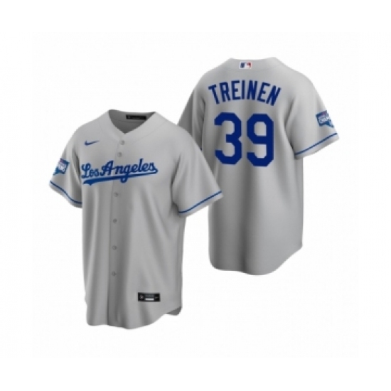 Men's Los Angeles Dodgers #39 Blake Treinen Gray 2020 World Series Champions Road Replica Jersey