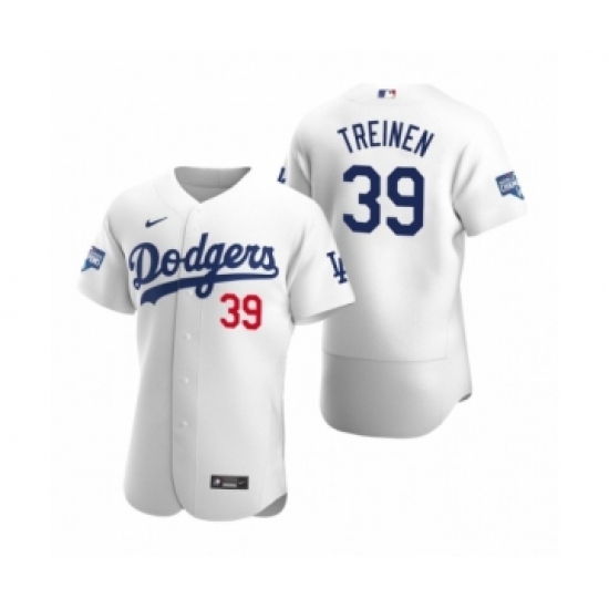 Men's Los Angeles Dodgers #39 Blake Treinen White 2020 World Series Champions Authentic Jersey