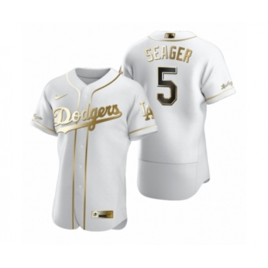 Men's Los Angeles Dodgers #5 Corey Seager Nike White Authentic Golden Edition Jersey