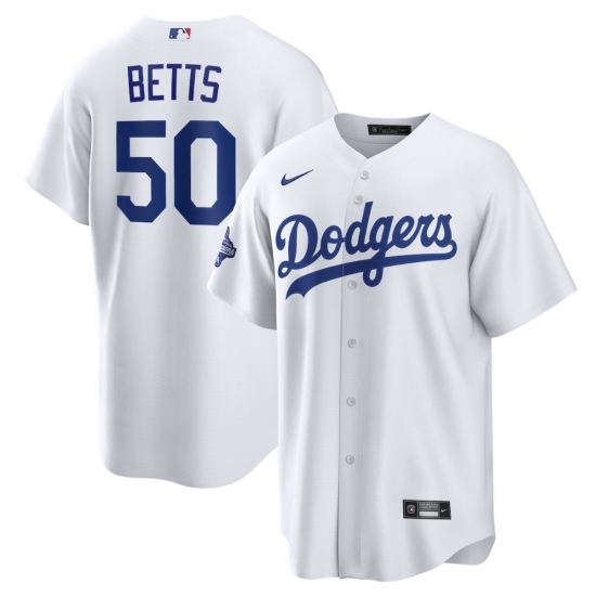 Men's Los Angeles Dodgers #50 Mookie Betts White 2024 World Series Champions Home Stitched Baseball Jersey