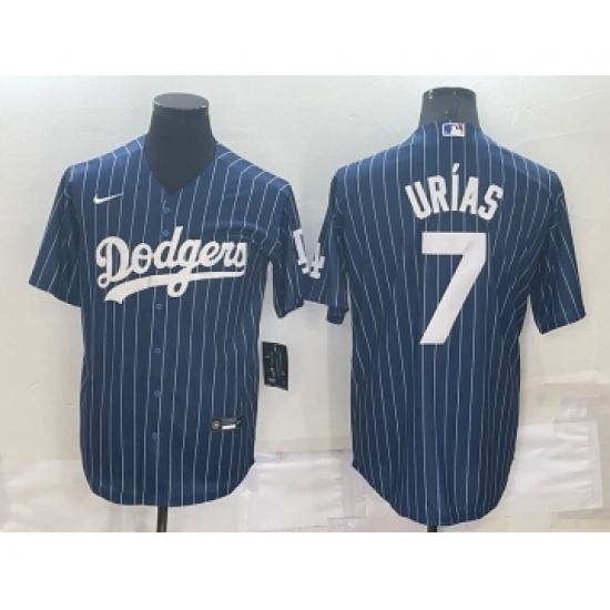 Men's Los Angeles Dodgers #7 Julio Urias Navy Blue Pinstripe Stitched MLB Cool Base Nike Jersey
