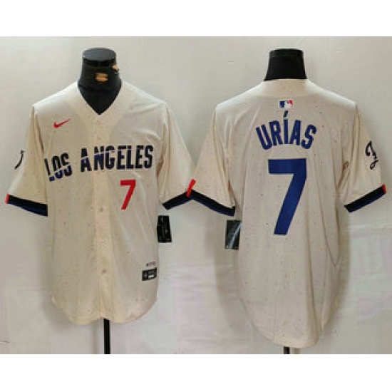 Men's Los Angeles Dodgers #7 Julio Urias Number Cream 2024 City Connect Limited Stitched Jersey