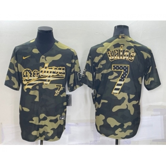 Men's Los Angeles Dodgers #7 Julio Urias Gray Camo Cool Base Stitched Baseball Jersey