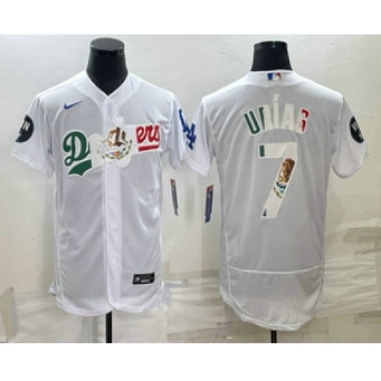 Men's Los Angeles Dodgers #7 Julio Urias Rainbow Number White Mexico Cool Base Nike Jersey