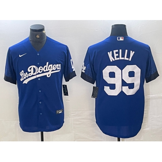 Men's Los Angeles Dodgers #99 Joe Kelly Number Blue 2021 City Connect Cool Base Stitched Jerseys