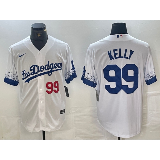 Men's Los Angeles Dodgers #99 Joe Kelly Number White 2021 City Connect Cool Base Stitched Jerseys