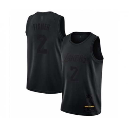 >Men's Los Angeles Lakers #2 Derek Fisher Swingman Black MVP Basketball Jersey