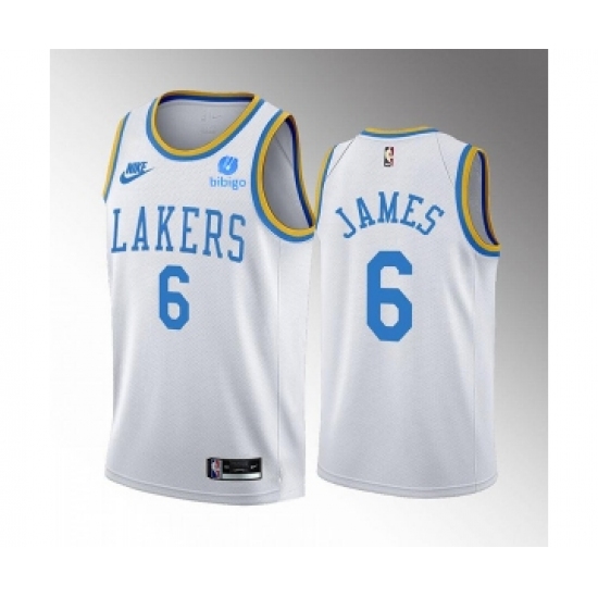 Men's Los Angeles Lakers #6 LeBron James 2022-23 White Classic Edition Stitched Basketball Jersey