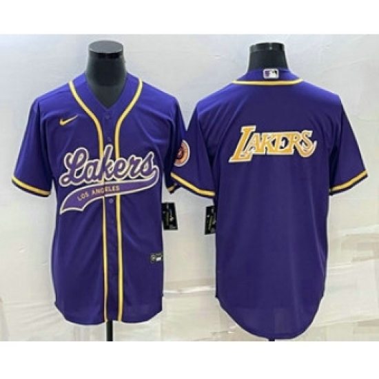 Men's Los Angeles Lakers Purple Big Logo Cool Base Stitched Baseball Jerseys