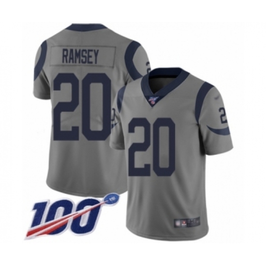 >Men's Los Angeles Rams #20 Jalen Ramsey Limited Gray Inverted Legend 100th Season Football Jersey
