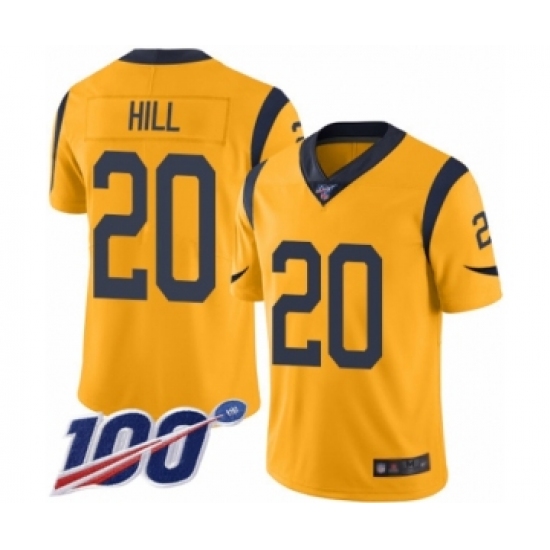 >Men's Los Angeles Rams #20 Troy Hill Limited Gold Rush Vapor Untouchable 100th Season Football Jersey