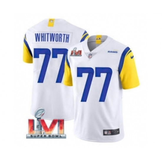 Men's Los Angeles Rams #77 Andrew Whitworth White 2022 Super Bowl LVI Vapor Limited Stitched Jersey