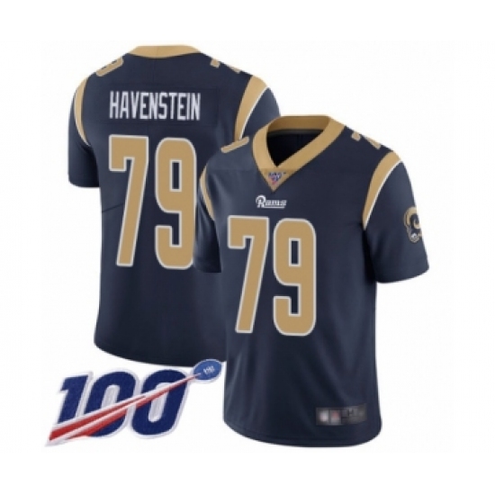 >Men's Los Angeles Rams #79 Rob Havenstein Navy Blue Team Color Vapor Untouchable Limited Player 100th Season Football Jersey