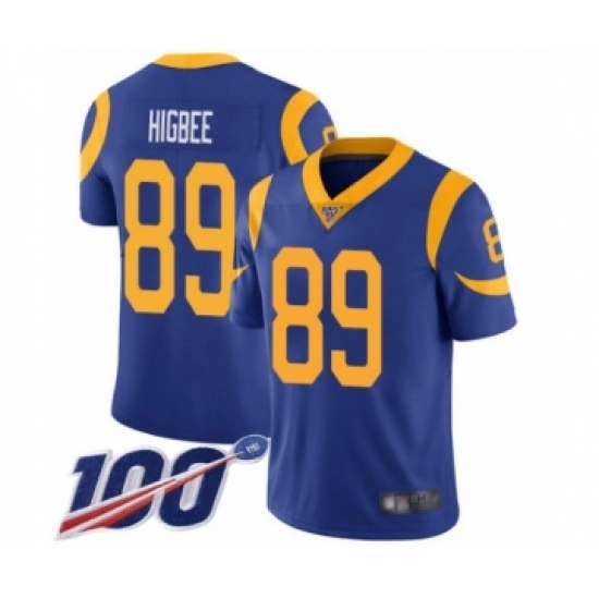 >Men's Los Angeles Rams #89 Tyler Higbee Royal Blue Alternate Vapor Untouchable Limited Player 100th Season Football Jersey