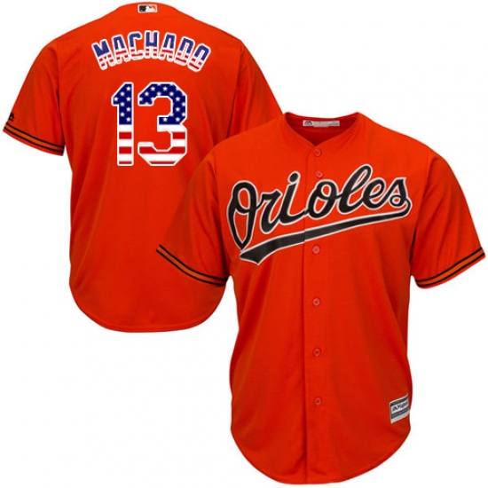 Home>MLB>Baltimore Orioles>Manny Machado>Men's Majestic Baltimore Orioles #13 Manny Machado Authentic Orange USA Flag Fashion MLB Jersey