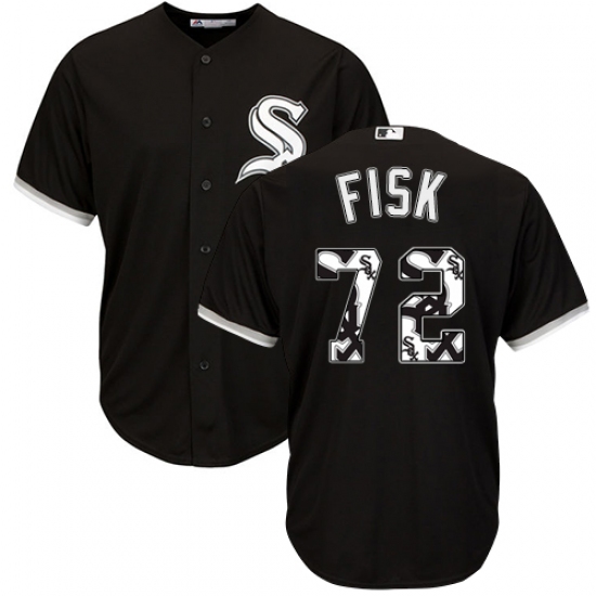 Men's Majestic Chicago White Sox #72 Carlton Fisk Authentic Black Team Logo Fashion Cool Base MLB Jersey